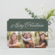 Esta elegante tarjeta fotográfica presenta un tratamiento tipo Feliz Navidad en blanco contra un fondo verde clásico con tres fotos verticales. La parte de atrás es un verde moteado que coordina. Esta tarjeta de vacaciones es la manera perfecta de enviar saludos a la familia y amigos.