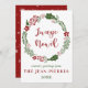 Corona de Navidad verde y roja, tarjeta de vacaciones con las palabras Feliz Navidad en Creole haitiano: Jwaye Nowèl.