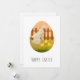 Esta tarjeta Happy Easter Card incluye ilustracion de conejito de Pascua alimentando a pequeños pollitos. El diseño está hecho en colores cálidos: ocre, amarillo, marrón y verde. Envíe esta tarjeta a sus amigos y seres queridos para celebrar las hermosas vacaciones de primavera - Pascua.