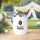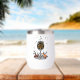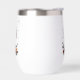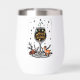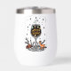 Un diseño de Navidades festivo y alegre exhibe una copa de vino rebosante de vino, rodeada de estrellas de colores. En la base del vaso hay ramas de helecho, pineconas y un ciervo. El texto escrito a mano dice: "Feliz Navidad". Este diseño está disponible en una amplia gama de productos.