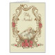 Tarjeta de Navidades italianos con una hermosa imagen tradicional del Niño Jesús en un pesebre con un borde dorado decorativo y rosas rosas rosas rosas. El texto es español. "Feliz Navidad" Opcional Verso interno: "Que Jesús te proteja a ti y tu familia este año nuevo". Inglés: "¡Que Jesús te proteja a ti y a tu familia este Año Nuevo!"