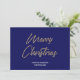 Una carta moderna y elegante de Navidades de Relieve metalizado azul y oro falso con "Feliz Navidad" en la parte delantera. Personaliza con tu nombre o apellido, y el año.