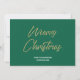 Una carta moderna y elegante de Navidades de Relieve metalizado verde y oro falso con "Feliz Navidad" en la parte delantera. Personaliza con tu nombre o apellido, y el año.