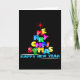 Árbol de Navidad y nieve compuesto por el colorido y decorativo texto Feliz Año Nuevo Feliz Navidad. Puedes cambiar o borrar la imagen de la plantilla en la parte delantera y el texto de la plantilla ¡Que la paz, el amor y la prosperidad estén contigo! dentro de la tarjeta.