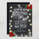Black White Red & Green Holly Feliz Navidad y Feliz Año Nuevo Navidades de tipografía Fiesta Bokeh String Lights Card Card.