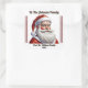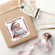 Un festivo pegatina cuadrado adorna un regalo bellamente envuelto, mostrando a un alegre Papá Noel. Los colores cálidos de las vacaciones crean un ambiente alegre, perfecto para difundir alegría.