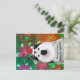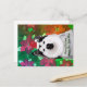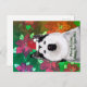 Feliz Navidad, tarjeta de Año Nuevo Feliz con un perro descascarado y flores rojas fondo. Fácil de personalizar, personaliza tu texto.