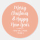 Un moderno y quemado naranja Feliz Navidad pegatina de Año Nuevo o sello para sobres con una elegante caligrafía de escritura blanca y una tipografía simple y elegante sobre un fondo de calabaza rosa. Diseñado exclusivamente para usted por Happy Dolphin Studio!