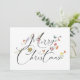 Una tarjeta de felicitación de Navidad con un diseño moderno boho de flores silvestres y mariposas