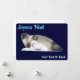 Una madre de foca anillada y su cría en un témpano de hielo. Aparece texto en francés que dice “Joyeux Noёl” en un tono azul y blanco brillante.