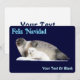 A mother Ringed Seal and pup on an ice floe. "Feliz Navidad" appears in glowing blue and white. Add your own additional text.