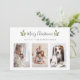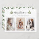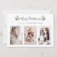 Esta sencilla y elegante tarjeta navideña dice "Feliz Navidad" en la moderna y manuscrita tipografía con delicadas hojas de color verde sobre un fondo blanco. Añade tres de tus fotos favoritas para personalizar. La parte posterior de la tarjeta tiene un marco botánico, arbolado y espacio para el mensaje de sus Navidades personales en el centro.