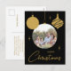Celebra la temporada con esta elegante tarjeta postal de Feliz Navidad con letra negra y dorada. Con hermosos adornos navideños de color dorado y una elegante letra, esta tarjeta trae un ambiente festivo y contemporáneo. Personalízala con tu foto favorita, un mensaje sincero y nombres para crear un saludo navideño único para familiares y amigos. Diseño sin foil para un aspecto elegante y moderno perfecto para difundir la alegría navideña.