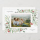 Envía tus saludos de fiesta con estilo con esta hermosa tarjeta de doble faz que presenta tus fotos rodeadas de vegetación en acuarela y bayas rojas de invierno. Agrega tu saludo personalizado y nombres/año para personalizar. Elegante y chic, pero simple y atemporal, el diseño perfecto para saludos alegres.