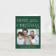 Elegante tarjeta de vacaciones verde con "Feliz Navidad" en una elegante tipografía blanca vintage, "feliz año nuevo" y un saludo en la moderna tipografía blanca, tu foto y tu nombre. Personalice su mensaje de temporada a la familia y amigos que están en el interior.