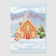 Feliz Navidad Gingerbread House Navidades Magnet Cargan Fondo Nevado, Árbol de Navidad, Casa de Gingerbread y una pequeña dama dulce lista para darle la bienvenida para tener una Feliz Navidad.