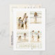 Este diseño presenta una alegre fotografía navideña de cinco años, una familia moderna, simple y elegante, un collage minimalista de fotos, con tipografía de escritura de caligrafía dorada, un tradicional y moderno diseño, una postal económica, con un collage de fotos familiar mínimo, tarjetas multifoto para Navidades, tarjetas de felicitación fotográfica para Navidades, una foto familiar de vacaciones para Navidades