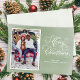 Este diseño presenta una navidad alegre, con una foto de 1, una tarjeta de foto elegante, verde, acuarela, tipografía de guiones, caligrafía, minimalista simple, unas tarjetas de foto navideñas mínimas.