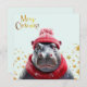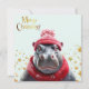 Feliz Navidad Hippo en un sombrero de Papá Noel y una bufanda