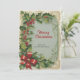 Celebre la temporada de fiestas con este elegante diseño navideño con exuberantes hojas de ensueño verdes, bayas rojas brillantes y un acento de cinta roja festivo. El marco dorado ornamentado y el suave fondo verde crean un estilo clásico de Navidad y una decoración de vacaciones.
