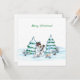 ¡Feliz Navidad! Hombre de nieve con gato y cachorr