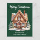 Esta preciosa postal de la personalizado Merry Christmas tiene su nombre personalizado de empresa de bienes raíces y su mensaje de vacaciones en la tipografía verde de moda junto con una hermosa imagen de una casa en invierno rodeada de pinos. Postales de vacaciones profesionales para marketing de negocios inmobiliarios.