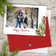 Este diseño presenta una hermosa navidad Feliz, lindo, color de agua, bayas grises de color rojo rústico, Navidades vacacionales, bayas grises, familia 1 foto, ramas botánicas de pinares, tipografía minimalista simple y caprichosa, escritura moderna de caligrafía elegante, follaje de invierno elegante y verde, tarjetas de felicitación de fotos de vacaciones para Navidades, moderno y elegante escritura de caligrafía moderna