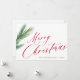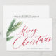 Elegante tarjeta de felicitación navideña tradicional con letra que presenta una rama de pino verde. Fácil de personalizar con tu texto y firma.
