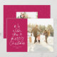 ¡Te deseamos una Feliz Navidad! Esta tarjeta fotográfica de vacaciones muestra un mensaje clásico en una divertida forma de árbol de Navidad con un fondo rosa magenta brillante y audaz. Con una foto en la parte delantera y otra en la parte de atrás, es una buena manera de enviar Navidades de ovación a amigos y familiares. El tratamiento de tipo lúdico tiene forma de árbol de Navidad y está salpicado de moquetas nevadas. La parte trasera es también rosa y está salpicada de especkles.
