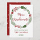 Corona de vacaciones de Navidad verde y roja tarjeta de Navidad, con las palabras Feliz Navidad en Māori: Meri Kirihimete.