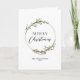 Navidades saludando tarjeta doblada con una corona minimalista de color de agua con acentos florales y verdes del follaje. Esta elegante corona enmarca el saludo "Feliz Navidad". Fácil de personalizar con el nombre de su familia, el año y el saludo en el interior de la tarjeta.
