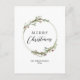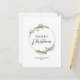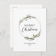 postal de navidades con una corona minimalista de color de agua con acentos florales y verdes. Esta elegante corona enmarca el saludo "Feliz Navidad". Fácil de personalizar con el nombre de su familia, el año y el saludo en la parte posterior de la tarjeta.