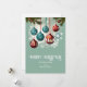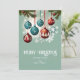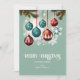Feliz Navidad tarjeta de felicitaciones color verde claro fondo verde azulado con baubles verde azulado y rojo y copos de nieve copos de nieve estilo retro de medio siglo invitación descarga instantánea
