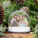 Feliz Navidad Christmas Photo holiday snow globe, with a modern family and script typography design. With red customizable lettering, you add your own text. You also replace the photo with your own image. Great for celebrating your Spanish language Christmas.