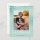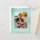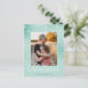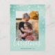 Esta postal moderna y sencilla para Navidades presenta copos de nieve en un suave y verde fondo invernal. Feliz Navidad está escrito en un hermoso guión escrito a mano. Personalice esta tarjeta postal de Navidades con su foto y nombre de familia.