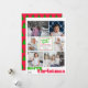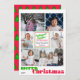 Muestra tus atesorados recuerdos del año en esta moderna tarjeta de Navidades de collage de fotos. Seis fotos - variedad de cuadrado, retrato y paisaje - organizadas artísticamente alrededor de tu mensaje de firma, que incluye nombres familiares e individuales y se puede personalizar. Feliz Navidad en audaz tipografía roja y verde acentúa el fondo de la carta. En la esquina está el año. Al revés un hermoso patrón original de árbol de Navidad verde sobre un fondo rojo.