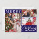 Difunde alegría en esta temporada con esta tarjeta de Navidades festiva, moderna y personalizada en blanco y azul, con tres de tus preciadas fotos familiares en la parte delantera. Adorada con la palabra "MERRY" en la parte superior y "Navidades" en un guión clásico en la parte inferior junto con el nombre de su familia. En la parte de atrás, comparte un mensaje de Navidades sinceros y editables, perfectamente adaptado para expresar tus deseos de unas vacaciones únicas. Añade tus primeros nombres debajo del mensaje para añadir un toque personal, creando un recuerdo que los amigos y la familia valorarán. Esta tarjeta es la combinación perfecta de tradición y personalización, lo que hace que sea una forma inolvidable de extender la alegría de las vacaciones.