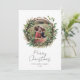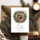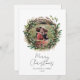 Guión mínimo Tarjeta navideña Feliz con la foto de su personalizado enmarcada por una floral corona floral de estilo rústico.