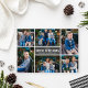 Tarjeta navideña moderna de Collage de fotos gris de carbón vegetal. La tarjeta de Navidades de estilo sencillo y moderno cuenta con seis (6) fotos, un saludo personalizado de vacaciones y elegantes rayas en la parte trasera. Colores: gris oscuro de carbón vegetal y blanco