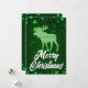 Feliz Navidad Green Moose Snowflakes Esta elegante "Feliz Navidad" cuenta con un moderno alce y un mínimo de acentos de copos de nieve blancos y verdes. La hermosa tipografía puede ser completamente personalizada con su elección de bienvenida.