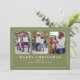 Este diseño presenta una alegre tarjeta de foto horizontal de Navidad, con una plantilla multifoto, un diseño botánico, mistletoe, acuarela con un elegante fondo verde oscuro, vegetación y elegantes bayas rojas griegas holly