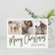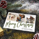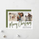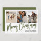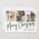 Este diseño presenta una alegre tarjeta de foto de escritura de caligrafía verde navideña con una feliz Navidad, con un guión de caligrafía verde, collage de fotos, una simple tipografía de escritura minimalista, un guión de broche, un mínimo, bonito y caprichoso,3 foto, una elegante tarjeta de fotografía clásica de vacaciones