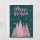 FELIZ NAVIDAD COMO CON ÁRBOLES DE NAVIDAD ROSAS Y NIEVE ROSA. DISEÑO DE NAVIDAD DE ACUARELA.