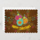 Colorido, caprichoso y divertido Happy Christmas Ornaments tarjeta de invitación al diseño navideño con tres adornos de bonito con estrellas y puntos en rosa, agua, naranja y amarillo sobre un fondo marrón con coloridos copos de agua, naranja, amarillo y rosa. El texto amarillo brillante dice ¡Navidades felices! Usted puede fácilmente personalizar la parte posterior de estas tarjetas de invitación de felicitación de vacaciones con su propio mensaje de texto.
