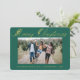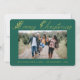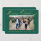 Una hermosa tarjeta de vacaciones con florales en oro deja un texto tipográfico con "Feliz Navidad" en un fondo verde, y una foto familiar que debes cambiar del menú personalizado, así como el nombre y el mensaje personal.