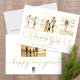 Este diseño presenta una alegre navidad cuatro fotos, familia moderna, simple y elegante, collage minimalista de fotos, con tipografía de escritura de caligrafía dorada, un tradicional y moderno año nuevo, con un mínimo de collage de fotos familiares, tarjetas de fotos multifamiliares para Navidades, tarjetas de felicitación fotográfica para Navidades, foto familiar de vacaciones para Navidades