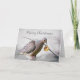 Una paloma llorona rodeada de nieve y ramas decora la portada de esta tarjeta de felicitación de papel de Feliz Navidad. La paloma sostiene un adorno de Navidad dorado con su pico. Arte, imagen y verso copyright © Shoaff Ballanger Studios, 2024.