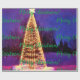 Feliz Navidad, elegante tipografía verde con brillantes árboles de navidad afuera y hermoso fondo nocturno, con varios árboles, cielo azul profundo y iluminación violeta repetiendo diseño de patrón para tu alegría festiva.