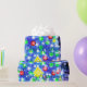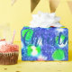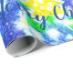 Feliz Navidad, elegante tipografía azul, con un vibrante árbol de Navidad con ornamentos verdes, rojos y amarillos y un colorido y nevado fondo de cielo nocturno repetiendo diseño de patrón para tu alegría festiva.