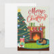 Tarjeta de vacaciones de Feliz Navidad Pastor Alemán Perro Chimenea Navidad es para familias y personas que aman a su perro pastor alemán. Debajo del árbol de navidad junto con todos los regalos también hay un hueso con un lazo para el perro. Es una escena serena de la víspera de navidad